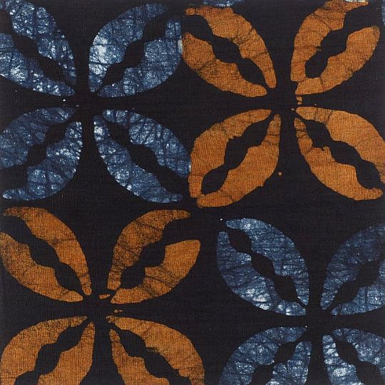 Applying melted wax to fabric creates a resist which dye cannot penetrate. Where there is wax, the fabric stays the colour it was before going into the dye vat. Where there is no wax, the dye colours the fabric.