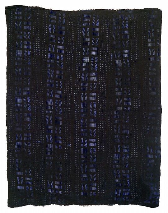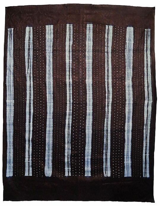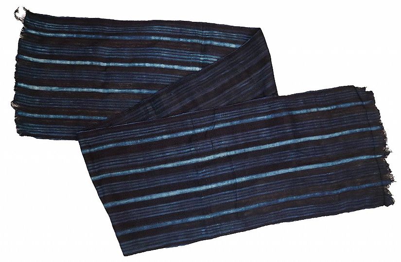 Our indigo damask cloths are from Guinea. They are handstitched to create a resist pattern, then hand-dyed in indigo.